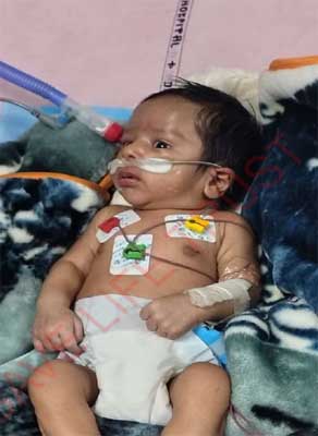 Baby of Sidra Naseem Khan is preterm, battling infection and breathing failure in NICU at Girraj Ji Children Hospital. Parents need help to afford ?2.3 lakh life-saving treatment